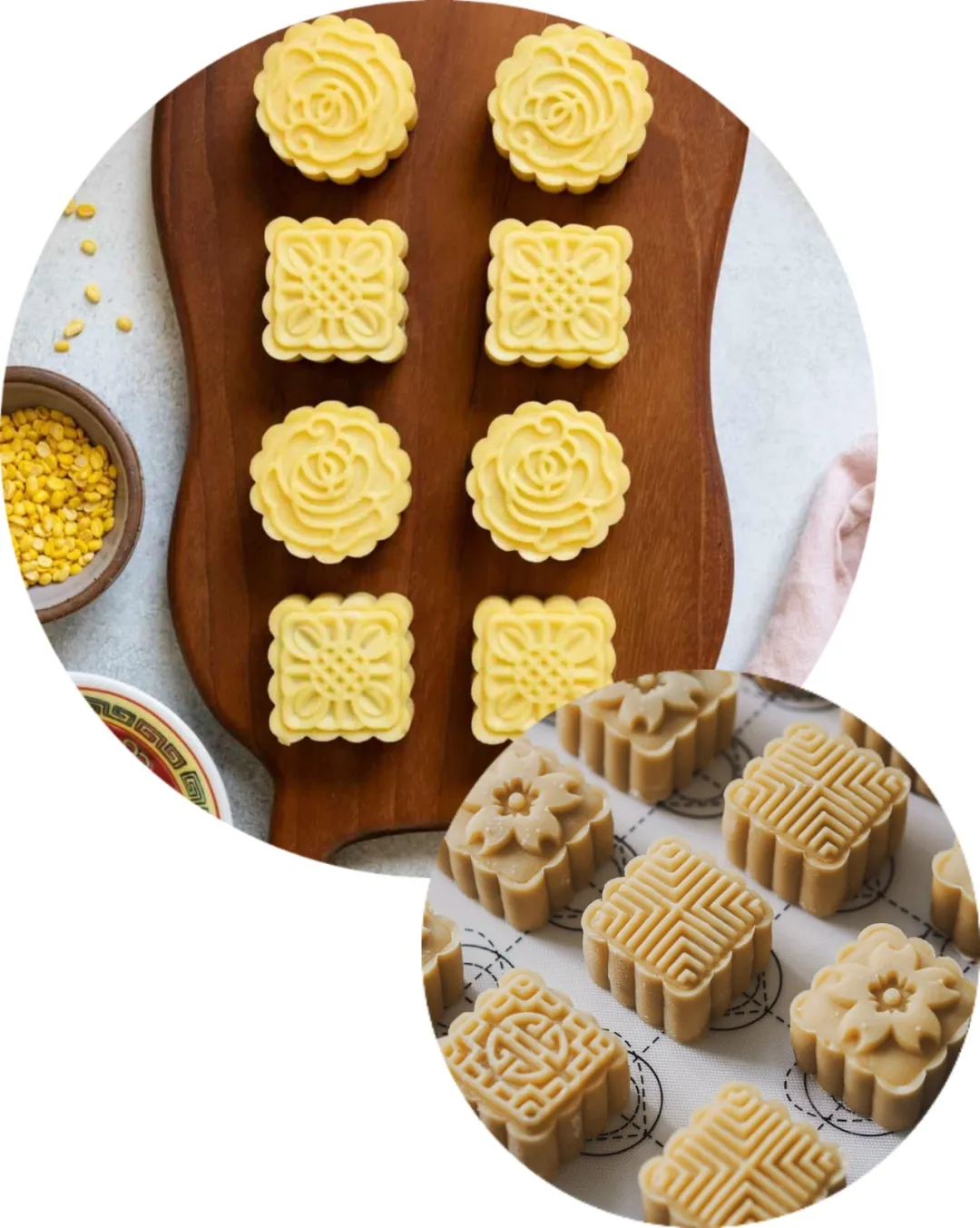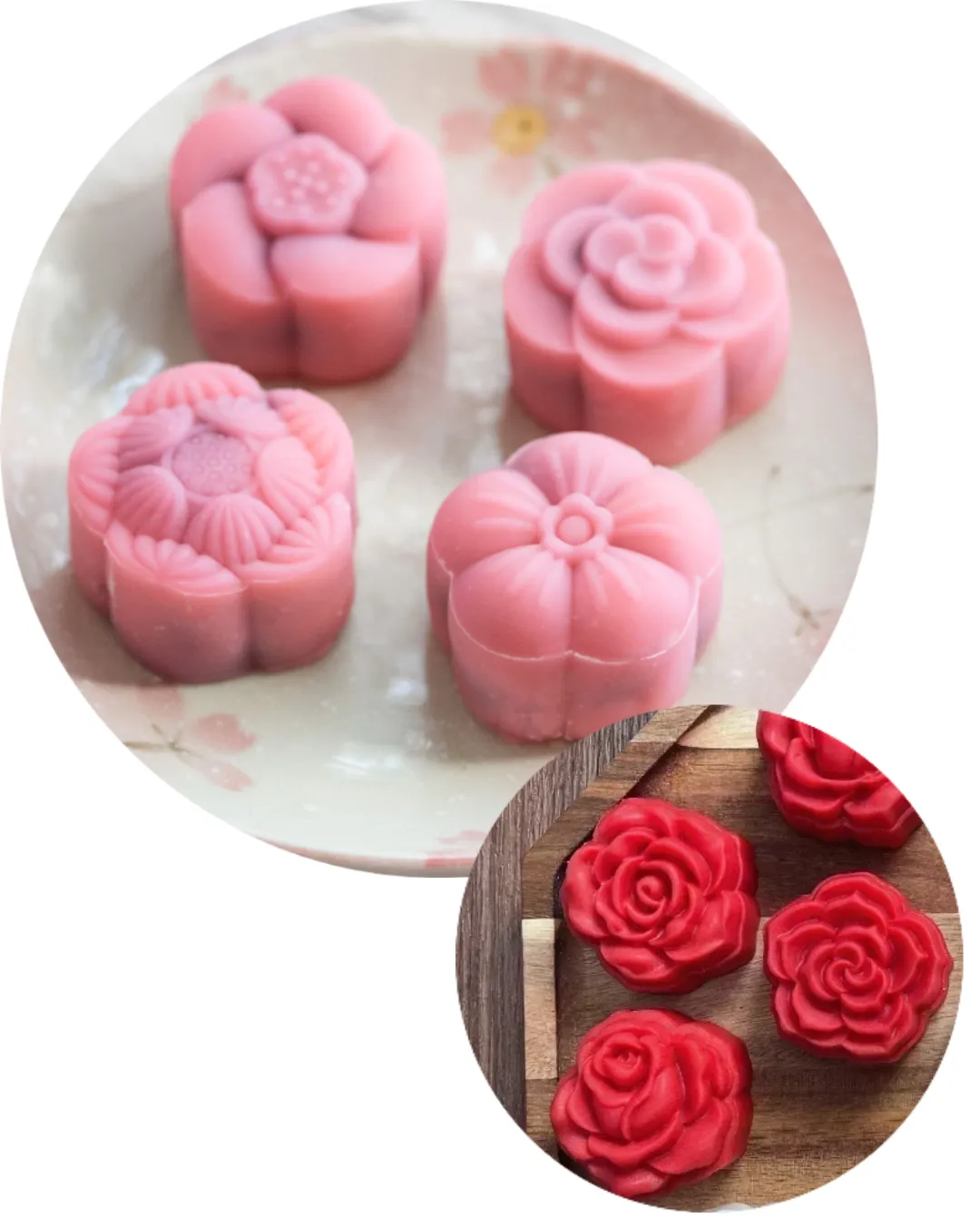 桃山皮月饼的走红,核心在于其“颜值即正义”的外观优势,市面上常见的桃山皮月饼,既可以有温润柔和的暖黄、清新淡雅的浅绿,也能呈现浓郁饱满的玫红、纯净高级的奶白,压模后花纹精致清晰,自带高级质感,完美契合当下消费者对“好看、好拍、好吃”的消费需求。而天然色素,恰好可以支撑桃山皮糕点实现丰富的色彩表达。