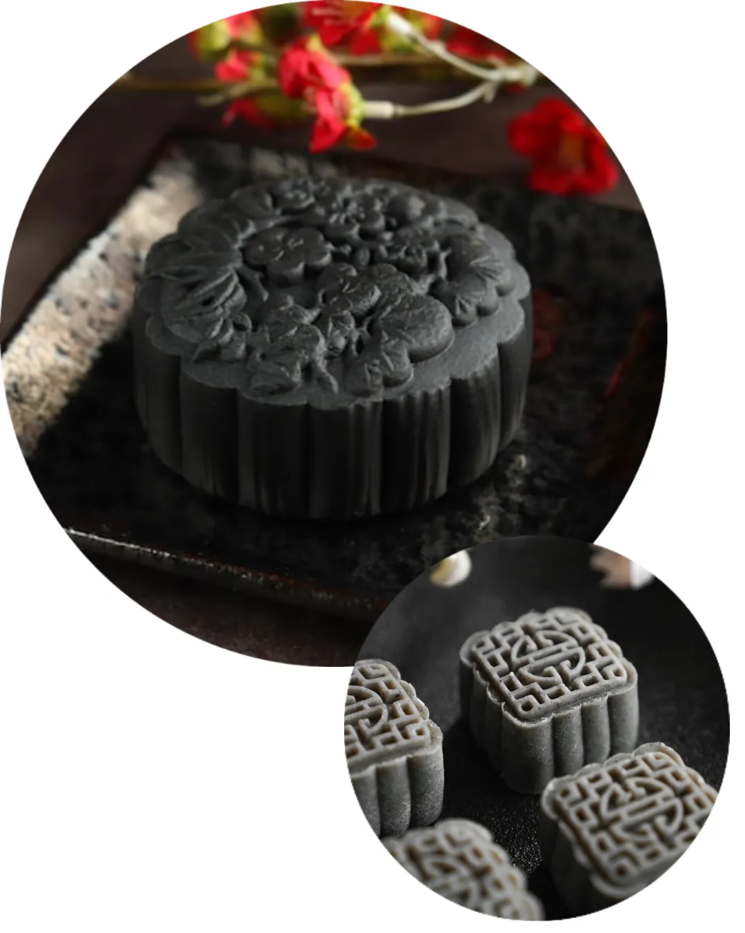 近年在开始有棕色或黑色外观的月饼不断出圈,造型新奇的桃山皮月饼,再加上打破传统的神秘色调,成为不少新品牌的热销产品,独特的外观色调,可以通过可可壳色和植物炭黑来完成,打造吸睛效果。